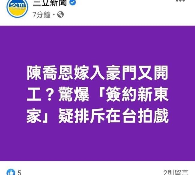 陈乔恩和男友艾伦从恋综节目中牵手成功,现如今两人已经在台湾领证结婚,就是不知道会什么时候办婚礼,不少人静候好消息。陈乔恩的爱情丰收的同时,事业这一块也没有落下,有消息称陈乔恩已经签约新公司,但网传她排斥在台湾拍戏是真的吗?一起来关注具体详情。