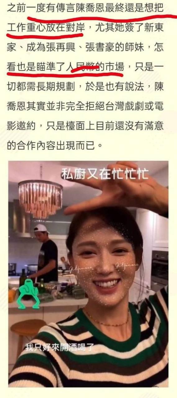 陈乔恩经纪人辟谣并不是排斥在台湾拍戏,反而希望在角色有突破。