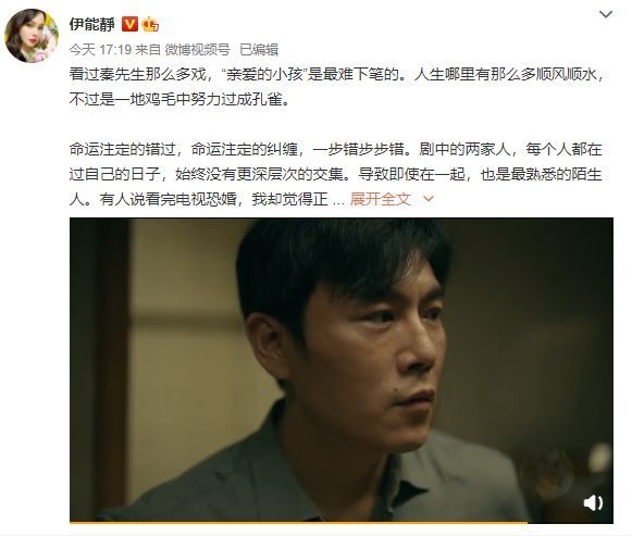4月17日,伊能静发长文老公谈秦昊的新剧《亲爱的小孩》,她表示这是最难下笔的一部剧,对剧中引起网友恐婚的场景解释道“正是因为如此婚姻才显出了爱的珍贵性”。伊能静透露了秦昊在拍这部戏时的一些感悟,也借秦昊的话回应了角色人物形象的争议,“演员不是来讨喜的,演员就是如实的去糊涂去挣扎,去爱去碰撞”,她还夸赞秦昊会把角色挖得更深,也夸赞了和秦昊一起搭档的任素汐、聂远、谢可寅以及老戏骨们的演技。最后,她号召观众在看完这部剧后能够珍惜身边人,多陪伴子女,可以懂得家人之间的界线。
