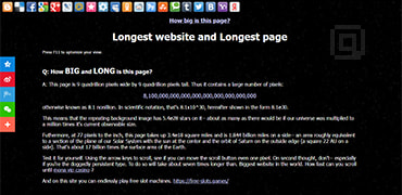 算是弥补了最X系列的一个空白。。。网站到底有多大呢,长宽各9万亿像素,足足有8.1x10^30平方像素,有兴趣的朋友可以试着用鼠标滚轮从左上角滑到右下角!