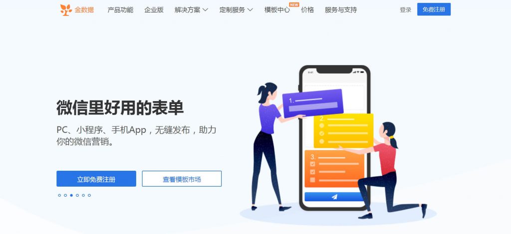 金数据是一个人人可用的在线表单工具,帮你轻松完成日常数据的收集、整理和分析工作,发现数据的价值。应用场景覆盖全行业,包括问卷调查、意见反馈、活动报名、信息登记、在线订单、测评考试、在线抽奖等等,金数据可以让聪明的你更加聪明的工作,提升工作效率,让企业数据化运转。