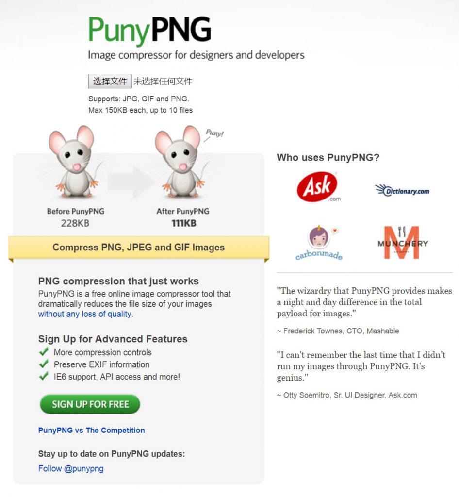 PunyPNG唯一的缺点就是需要注册才能使用,而且全是英文的。