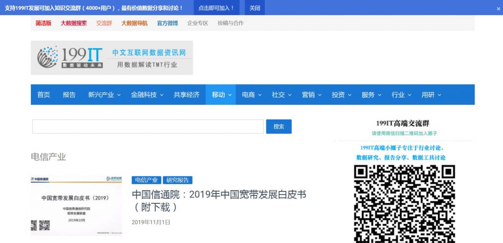 中文互联网数据研究资讯中心主要分有新兴产业、金融科技、共享经济、移动、电商、社交、营销、投资、服务和用研等,让你更加清楚了解各行业的互联网信息资讯,提供专业的数据产业报告。