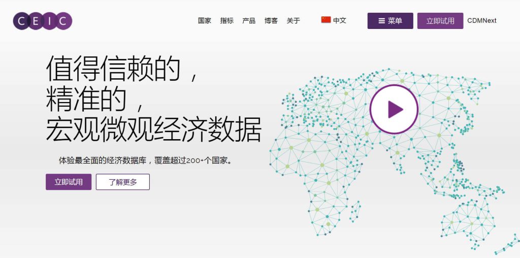 中国企业家投融资俱乐部(CEIC)提供精准的、值得信赖的,宏观微观经济数据,体验最全面的经济数据库,通过最前沿的操作平台CDMNext帮助您将超过200+个国家的550多万条时间序列数据集成到您自己的工作平台上。CEIC的数据库可以让您轻松掌握全球市场动态,以及对新兴市场经济数据有最深刻的认识。